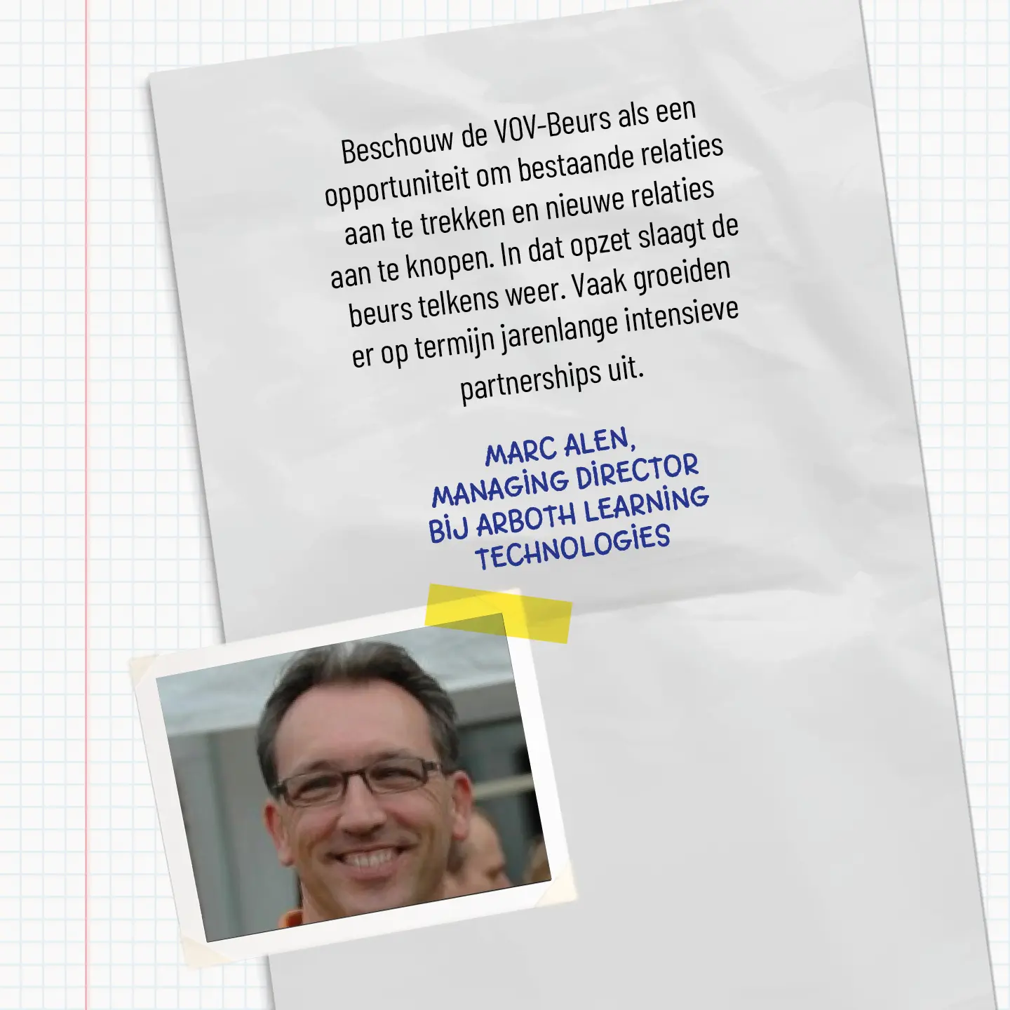 De VOV-Beurs is het uitgelezen moment om jouw innovaties en/of evoluties (al dan niet beïnvloed door of gecreëerd met innovatieve technologie) kenbaar te maken aan het grote L&D-publiek.